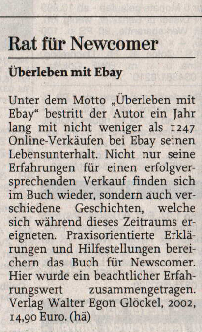 Walter Egon Glöckel - dreht EBAY.com Betrugs-Auktion ab!